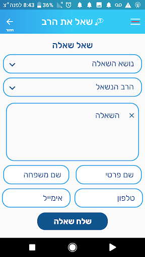 * Ask the Rabbi: a function that facilitates sending halachik quandaries to expert rabbis from all fields.