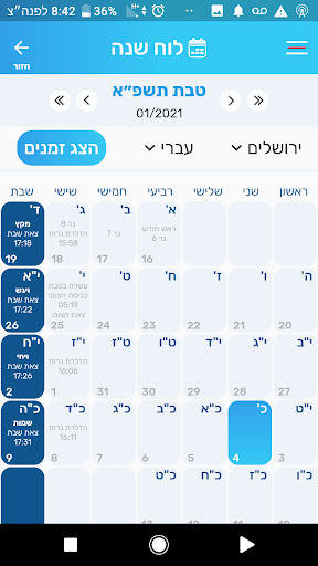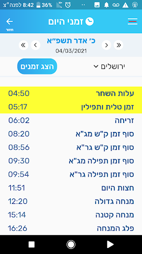 * A detailed list of the halachik hours of the day, for every city in Israel.