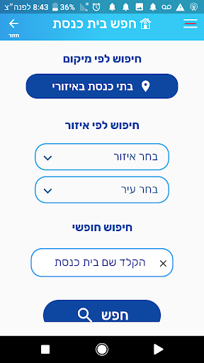 * Synagogue search: a database of thousands of synagogues throughout Israel of all types and a navigation option via Waze.