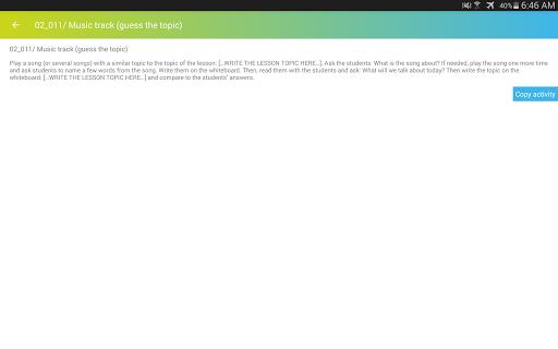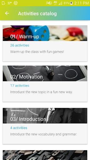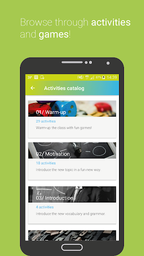 The best aid for a teacher – don’t spend time looking for a new ESL warm-up, game or any other lesson activity! With a built-in Activities catalog you can navigate through all the activities and get fresh ideas for your lesson including: