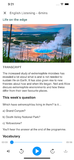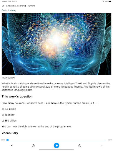 - Open BBC Learning English features: 6 Minute English and The English We Speak