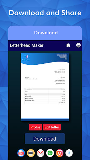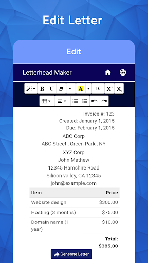 Create letterhead design in 1 min using letterhead maker app. Fill the company details and generate professional letterhead with text editor.