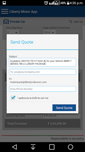 For any support, suggestion & feedback please drop a mail on : motorquote@libertyvideocon.com.