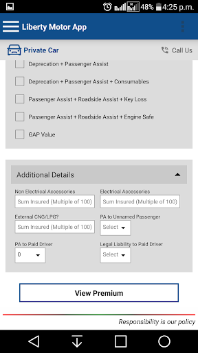 Follow the instruction in the Home Screens carefully in order to get the accurate premium. Based on the feedback and its adaptability to the users, we’ll design more motor products on this app.