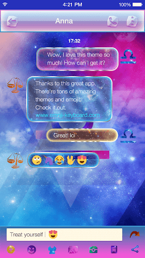If you love Libra, don’t miss out this Libra Emoji Keyboard Theme. Make your phone pop among your friends by grabbing this Libra Theme. Enjoy funny typing with Libra Emoji Keyboard Theme.