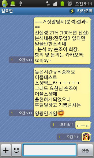 Polygraph with voice recognitionEok Sounds to me complete the degree through a lie detector eomeyijinghan speech recognitionBut notGandhi ppyamchineun polygraph is full of humanist. Usage 1. quot;After the click of a button, click the wordquot; window pops up After pressing the button says. If you recognize the room again, speaking defeated After pressing the button once more says at all fanciful nonsense, you recognize the blank.2. Chairman of the overflowing bitterness sonjoyi persuasive appeal to go, but faith would result in overflowing the polygraph analysis.3. Analysis to other people katokeuro you want to send 39;to my colleague39; After pressing the button sends Required yireolttae yireonbunkke1. To doubt everything in the world are wondering why uisimbyeong patient family, friends, lovers, pets and the hazards of smoking, dancing ballerina in toe shoes did lay Well, taxi meters, electric blanket in the waves, catching waves cactus, neighborhood Toppokki tteokbokyijip per person is some thing is not shedding gukjja, billiards Tama39;s friend from the same store is beer every taste teulrilkka Why?, the court priest musoyu you to print a book called What Would passed away?, clubs, night In the 39;I39;m chummanchureo39;, like the first taste of drinking shochu shaken wrong? etc. ..2. The marble in the took uibujeung uicheojeung heuteuleojisin minutes like my wife to see me try a little smile. 3. Watching in the company jjamnalttaemada neyiteutok gonggam and anger are also impressed, and time when the right poem minutes why not just want you to anyone Application manyijom four weeks.4. Gwontaegi knocked couples. Do you say I love this application together with a lower truth came out after the people who came highly Giving the game a 10 minutes massage, you massage. People from less difficult.5. Motgyeondidaga the pressure to stop smoking ecigarettes are harmless to your health After convince the liquid fill charge is given for ecigarettes and too cumbersome haneunge For a lot of money just fly back and brush my teeth with soap and tobacco smoke cool and majestic one minute sonssitneun6. Tired, tired of psychological warfare with criminal suspects who examine the interrogation of suspects in this application while trying to find a moment not fun for laughs nongdamim ... Sorry The advantage of this application 1. There are2. Sonjoyi sonjoy Chairman earn money. Sonjoyi President sseuni money beonmankeum company you work for your company to raise money to continue work without getting fired allows. Nui Good Guys is good, kkwongmeokgo dalmeokgo Sam, you39;ve got nothing to lose reverse, let39;s put off the fire. Ngoc Son Goku in two refresher save the planet as your chi sonjoyihoejangyi myeotbaekwonssik collect your money makes sense that the earth in peace.Suikgeumjung part of this Application to the development of the Republic of Korea, the sports industry to contribute a little bitDevelopers at the expense of the pool is used. Four 120 schnauzer ... but three managed to come to mayikyu jalchim Cheongdamdong possible war, jukppangeun real face instead of a bunch of money ... I39;ll be right ... instead of jukppangeuro fit. Mongchayi the heotsorigo do naegina jjangkke B, question, complaint, anus, hair removal, Letters, keyboard Warrior39;s BattleKakaohtok: sonjoyemail sonjoy83@gmail com