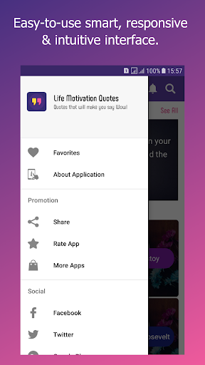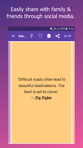 We are regularly working to make it one of the most beautiful apps on the play store. With the focus on the quality of quotes, we have also directed our efforts in terms of design and creativity along with simplicity. Life Motivational Quotes - has lots of "Wow Quotes" about different categories. More to come as we constantly verify and upload amazing quotes.
