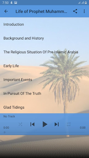 This application brings you the life of Prophet Muhammad (pbuh) in English high quality audio. Beautiful narration of the life of the Prophet Muhammad (peace and blessings be upon him).