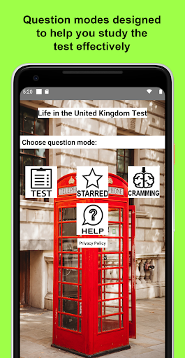 -TEST mode - this helps you gauge your readiness for the actual Life in the UK test.
