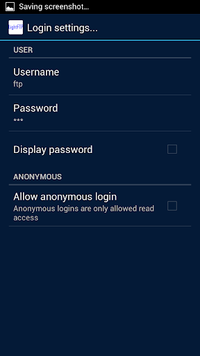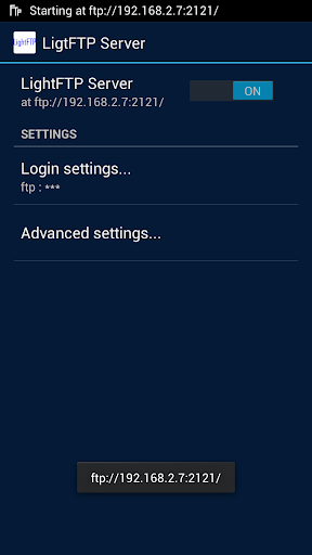 Light FTP server enable Android device act as standard FTP server. Light FTP server enable you to control your device files remotely over WIFI/LAN. You can use standard FTP clients/browser to connect to your Light FTP server.