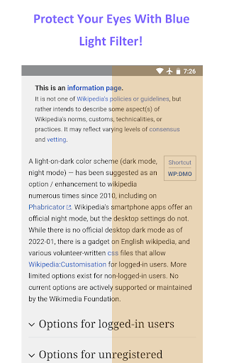 Lights Off enables dark mode on supported apps that have implemented a dark theme including Instagram, most Google apps and others. It also includes a really handy Quick Settings shortcut that you can enable for easy access. This app has been tested to work on devices running Android 6.0 and up, with future support for many other versions coming soon. Disclaimer this app won't enable dark mode system-wide just the apps that support a dark mode appearance. Also Lights Off provides Blue Light Filter and extra brightness reduction for a complete night mode performance.