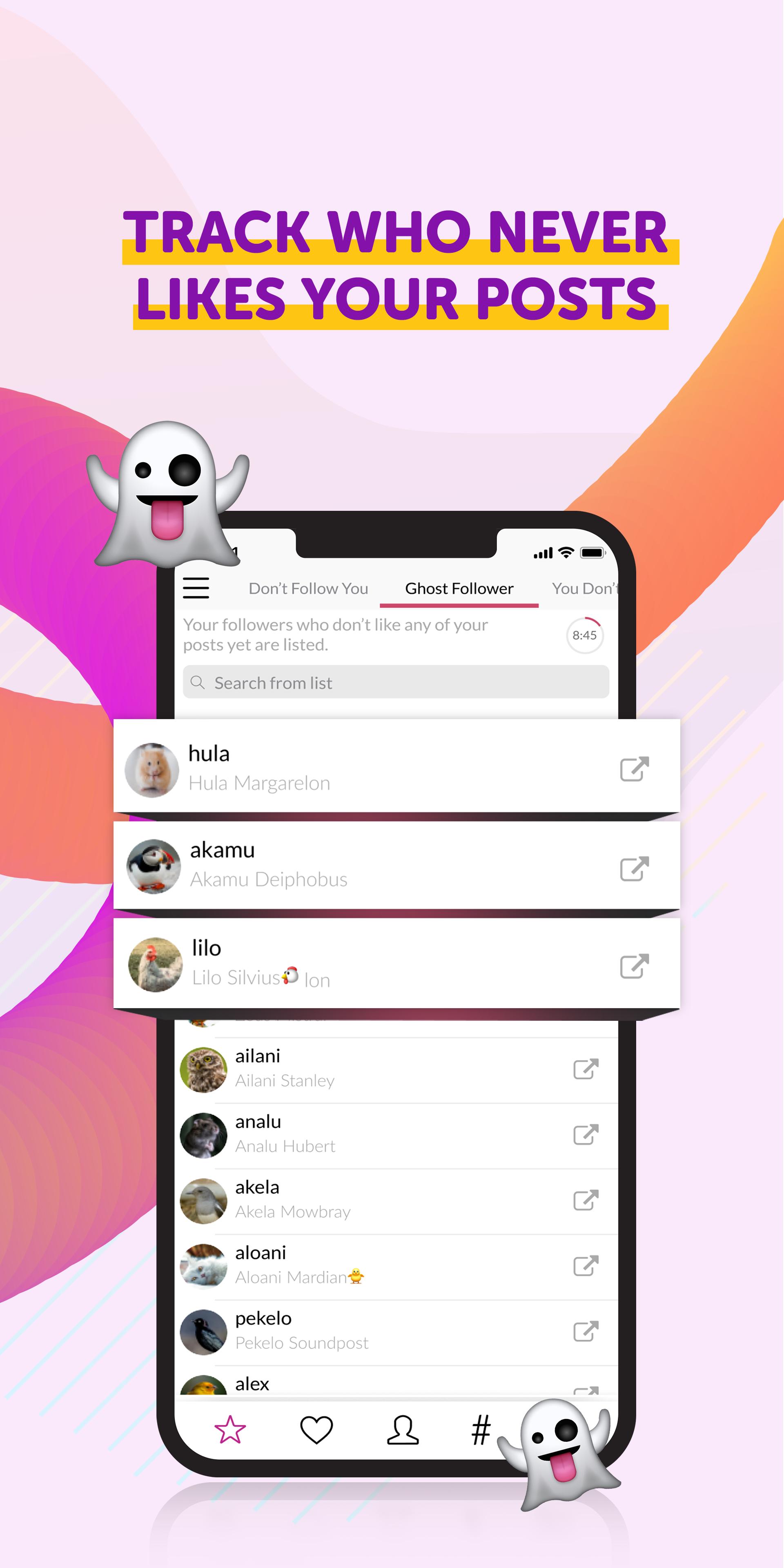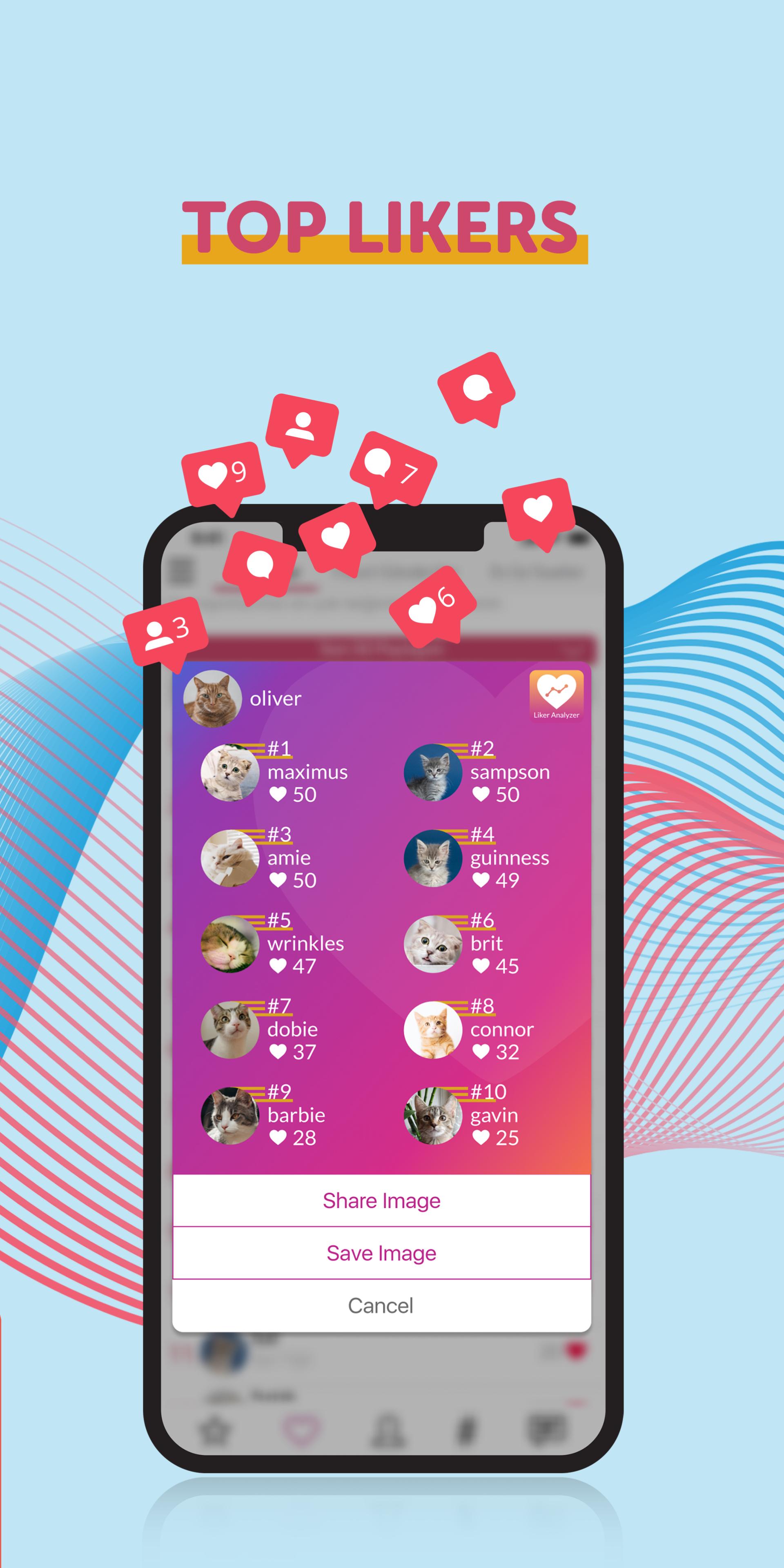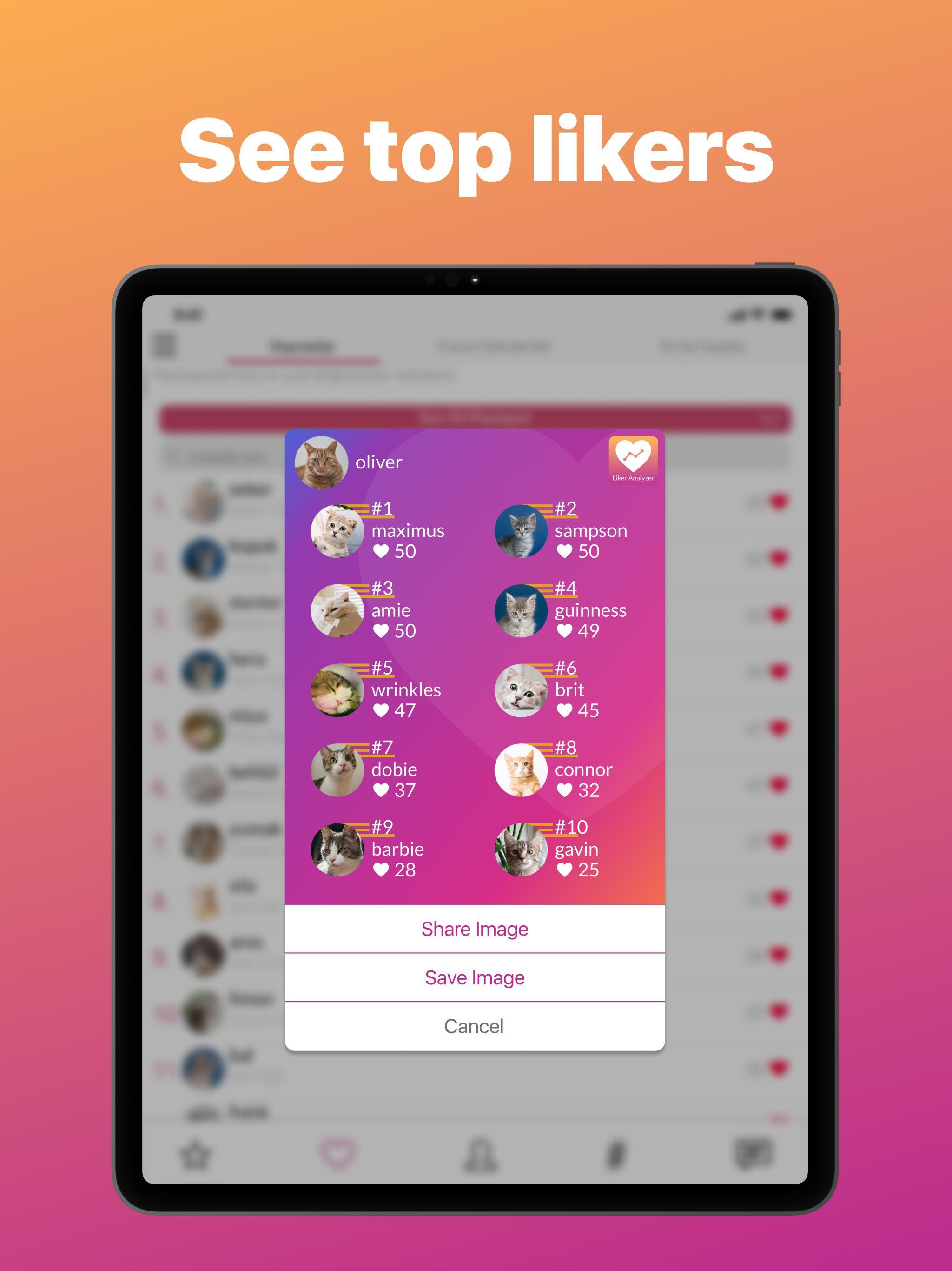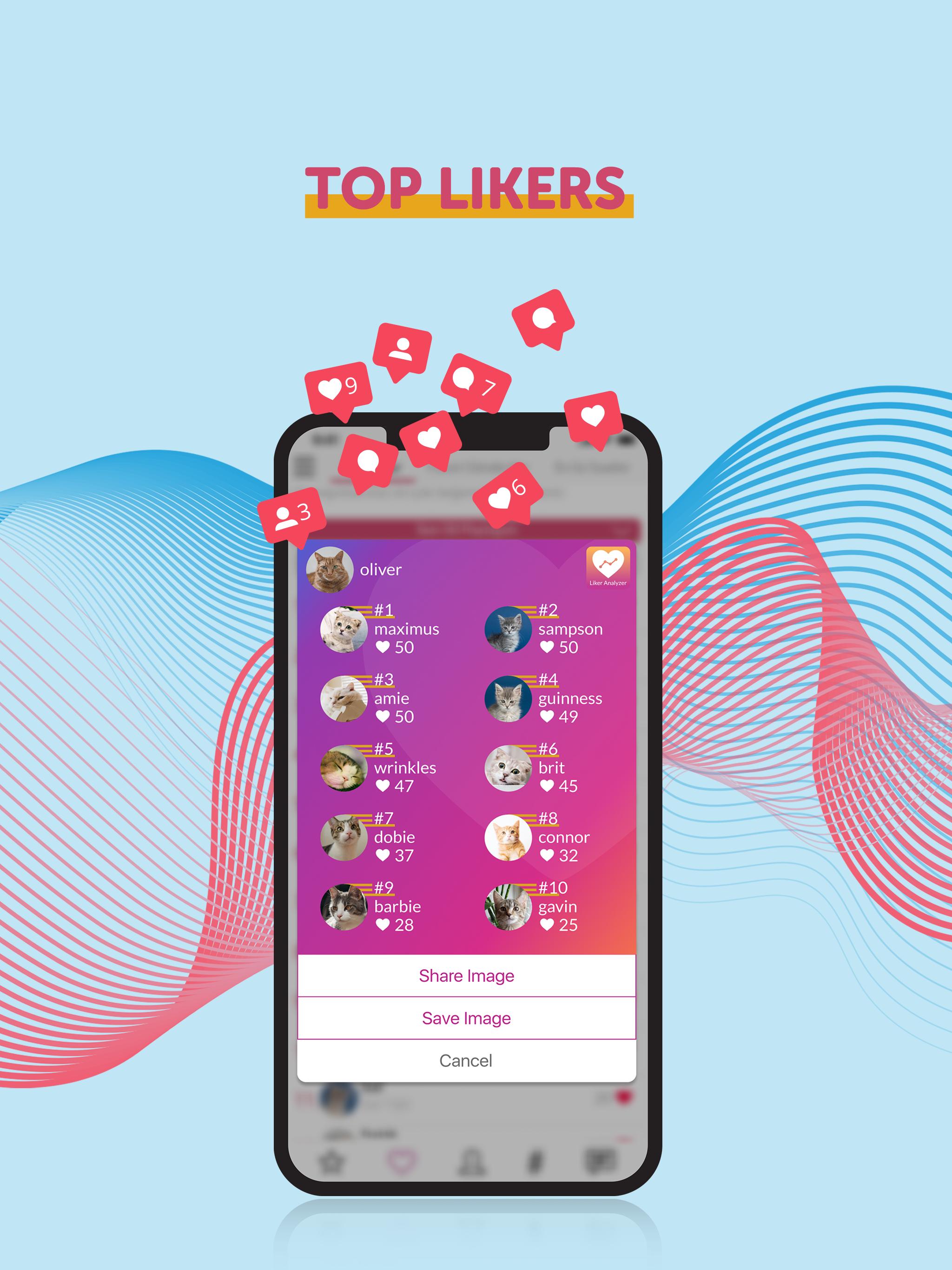 Using the ‘share’ button, you can create your top liker and top-10 likers card. You can share these cards on Instagram stories or IG posts with just one click. Followers will like your posts much more than before! Motivate them.