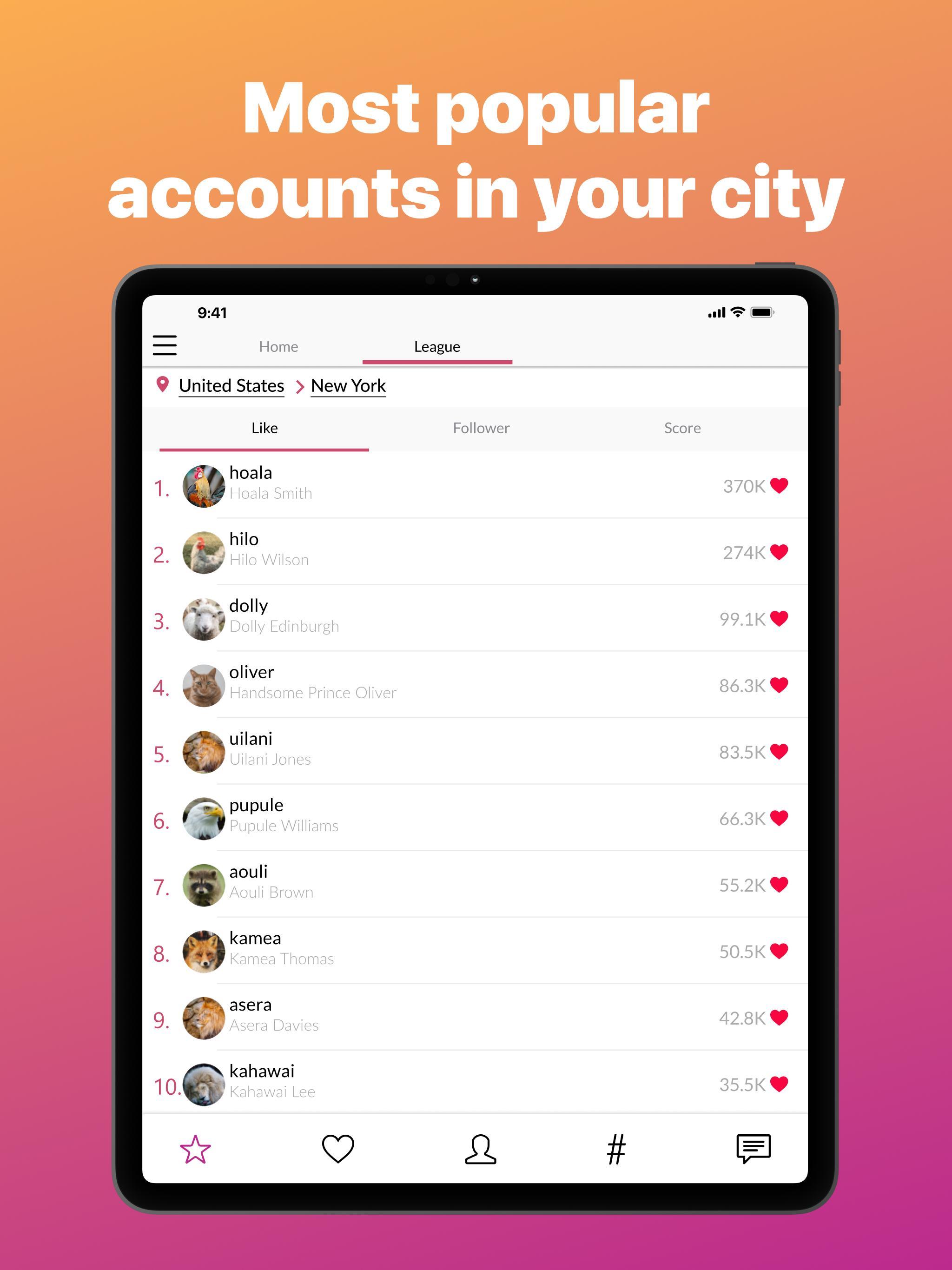 • Discover the most popular Instagram accounts in your country or city