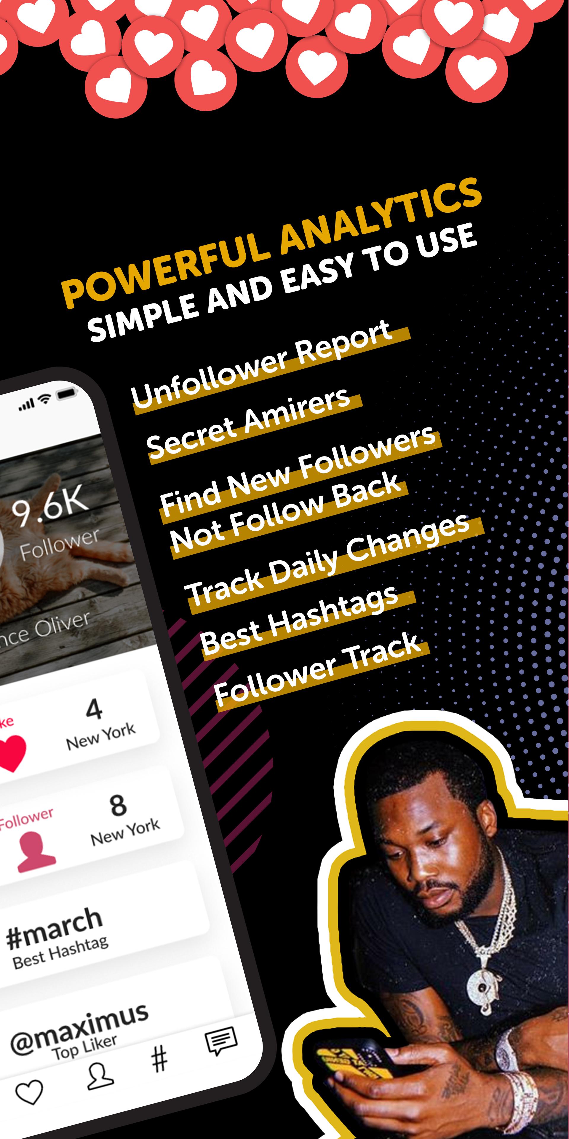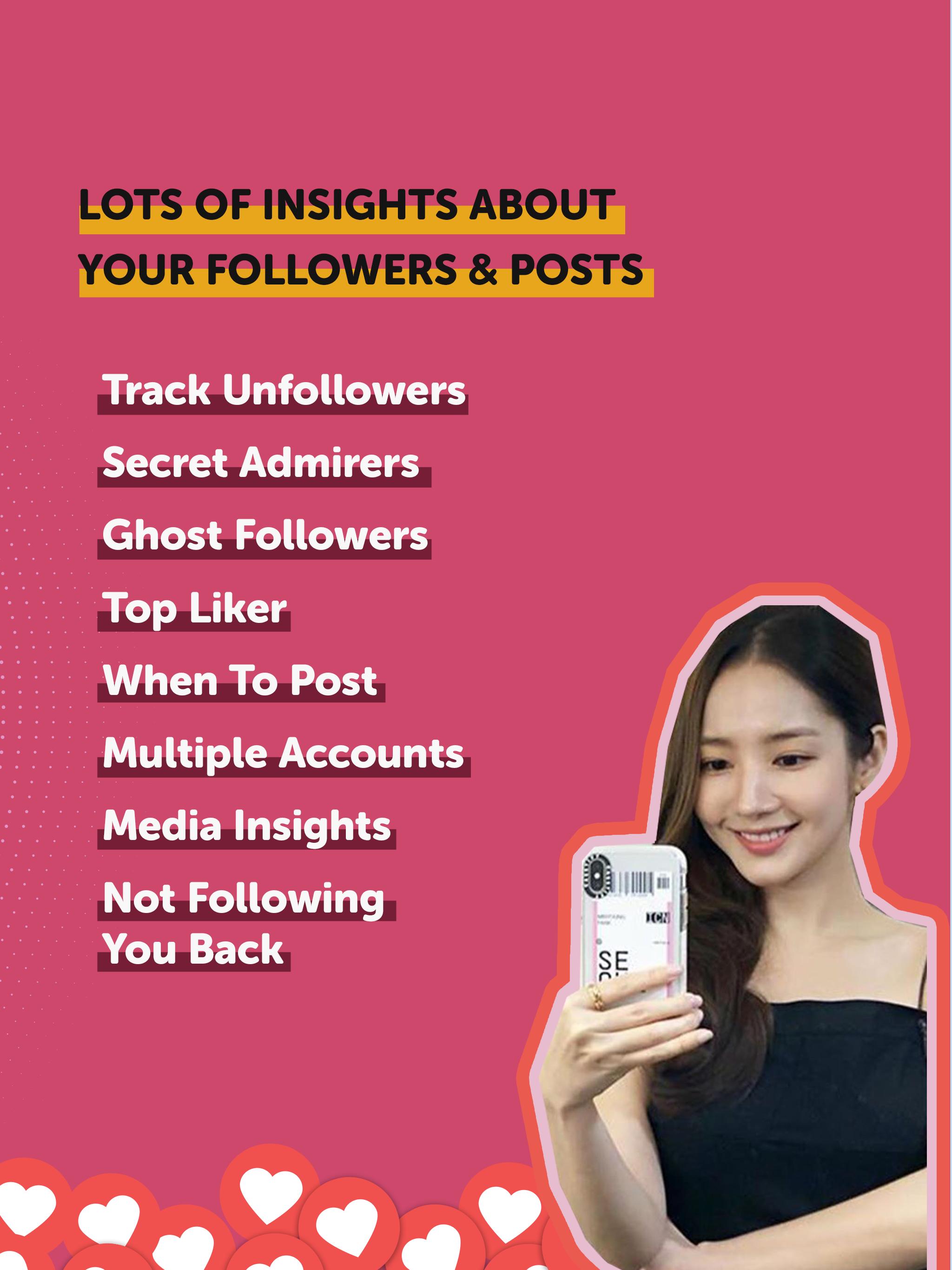 Track your Instagram followers, find out who unfollowed you on Instagram, who is not following you back, discover most popular Instagram accounts in your city, view your fans, rank your best friends, and growth tips.