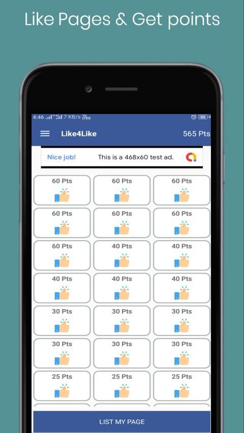 - You can decide how much points(25/30/40/60pts) to be given to another user for liking your page