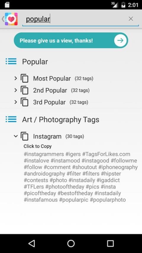 With Tags for Likes you will have plenty of tags for your Instagram photos. With good tags, you’ll get more likes and followers for your Instagram pictures and accounts. Our apps will help your get more likes on Instagram.