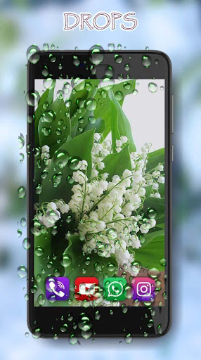The application Lily May Live Wallpaper contains an interactive effect of water droplets on the glass. Drops of water or dew flow down the phone's glass. When you touch your finger, the drops realistically fly apart.