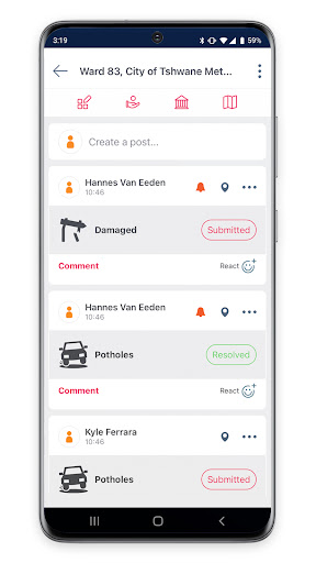 Instantly report infrastructure and service delivery breakdown directly to your municipality