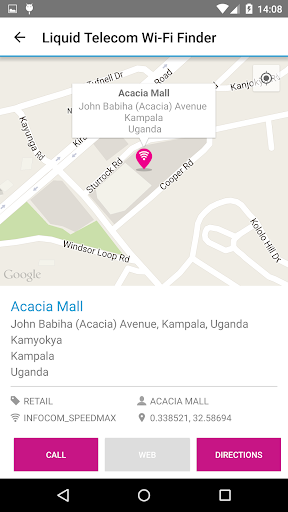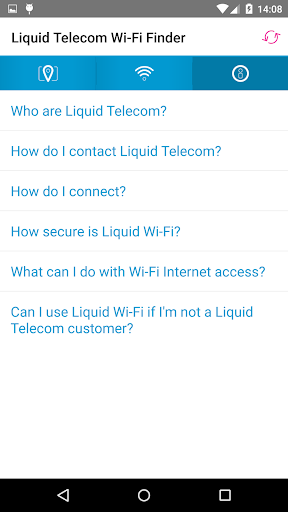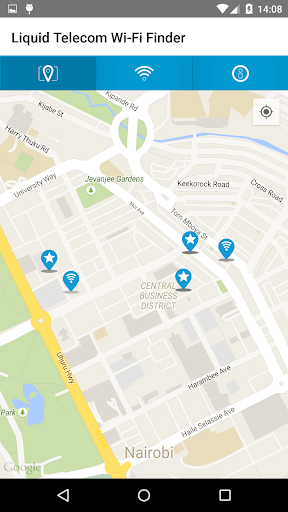 Wi-Fi hotspot finder from Liquid Telecom; you can find hotspots where you can get online via either a map or a list of locations, with address, type of location, and contact details for each.