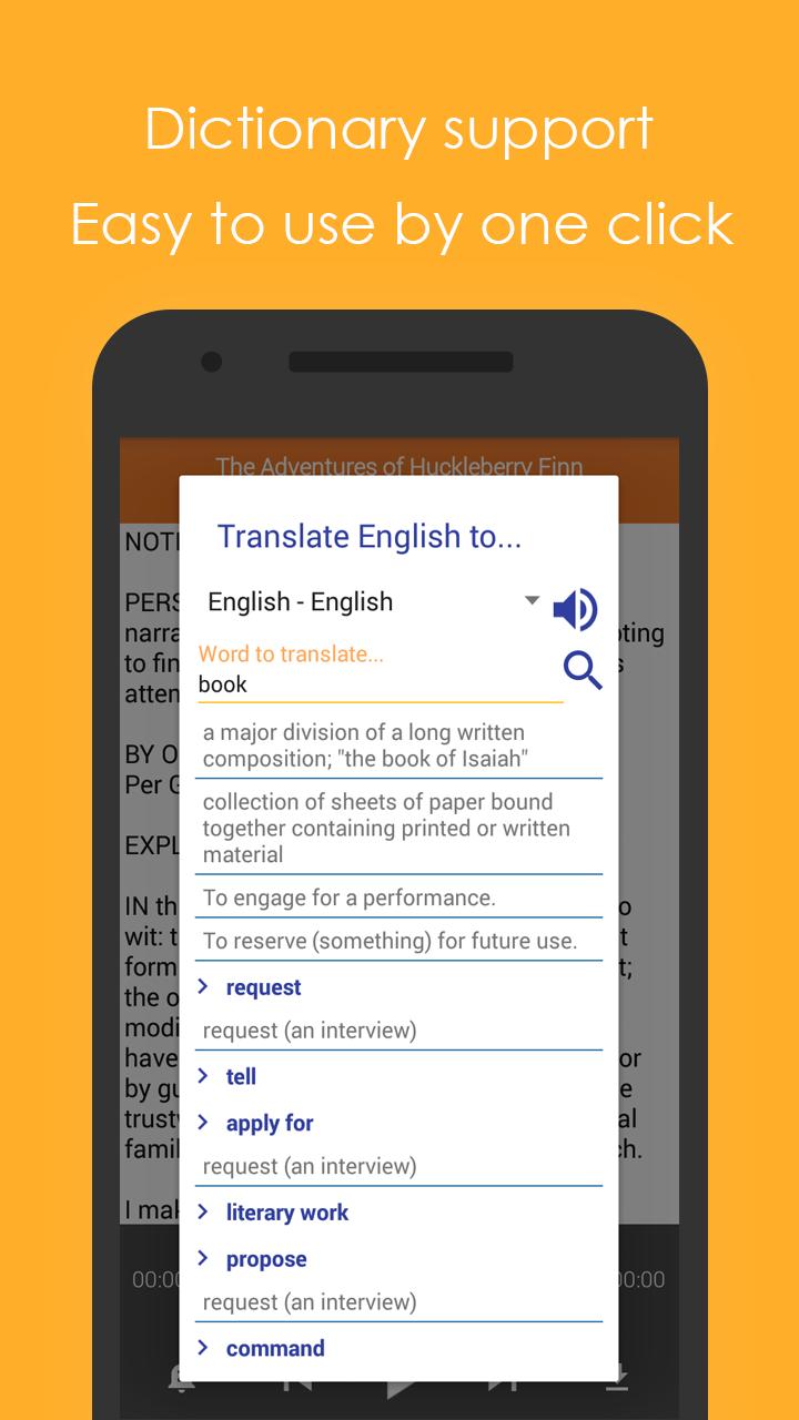 + Support dictionary function to help you to understand which word you do not understand clearly