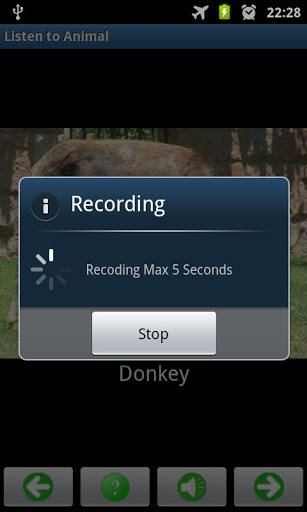 keywords: animal, sounds, kid game, birds, touch, voice, images quot;animal soundsquot;, quiz, guessing game.Listen to animals and birds soundsApplication for kids, to keep them busy and may be learn something about animals and birds sights, sounds. and you can record the animal name using your own voice to be played laterFeatures: A small quiz guessing the animal39;s game using animal name or animal sound Click on the image or click on Speaker39;s button: play animal39;s sound. Move left or click forward arrow button: Show next animal39;s image. Move right or click backward button: Show previous animal39;s image. Move down or click on quot;Calloutquot; button: play animal39;s name in current locale. Move up or click on quot;Playquot; button: play recorded sounds if any change the icons size From main view you can either show animal or bird image, or you can select play sound directly by touching the icon.Supported languages for animal names:english french german spanish There is 32 Animal in free version, and 54 in full version and some other optionsCowChickenCalfDogDonkeyGoatHorsePuppyRoosterSheepFlickerCatKittenChimpanzeeDuckGooseGorillaSeagullLarkMonkeyParrotPeacockSwanWoodpeckerZebraCamelDolphinFrogRhinocerosPenguinCactusWrenTurkeyAnd there is more in full versionThere is a free versionget full version here :https:market.android.comdetails?idcom.aramaic.animsound