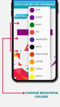 Multi Color For Facebook application which have option to make unique your Facebook with many more beautiful colors.now no boring chat with Facebook install this application and start to make your Facebook accounts more unique.