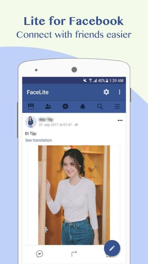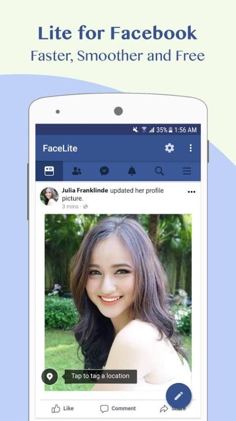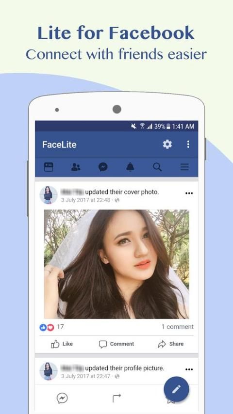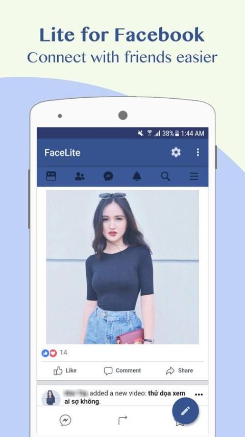 Lite for Facebook - Security Enhanced has a minimalist design, different from other Lite for Facebook applications, this app is faster in the process of posting status or surf Facebook page and lighter when it is run on smartphones.