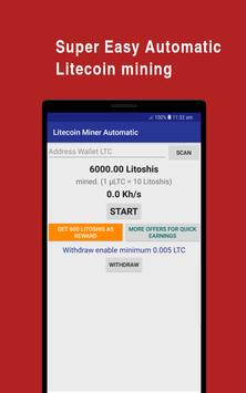 Note : App mines litoshis where 1 Litecoin = 100000000 litoshis.