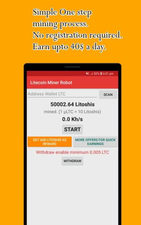 Only app to mine Litecoin automatically with mining bot in your phone.