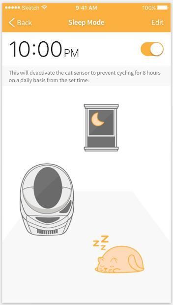 -Manage your Litter-Robot settings: Adjust the wait time, lock out the control panel, activate the night light, or schedule sleep mode.