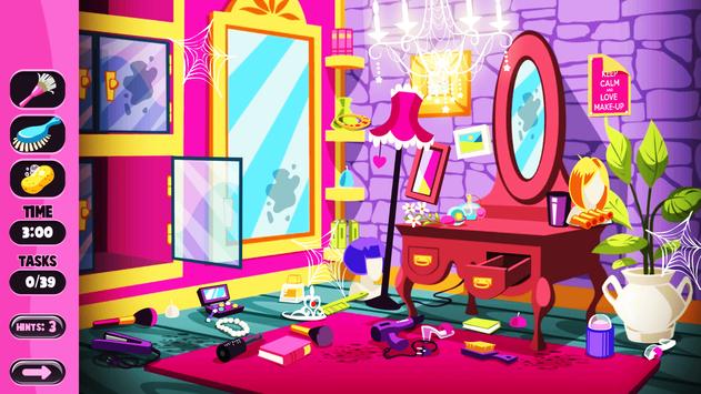Help this little doll princess to cleanup her messy but royal dream home palace!