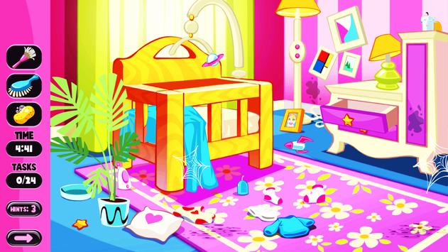 This game includes straighten the furniture, jigsaw puzzles, place teddies and dolls and other things back on their place, repair floors and walls, scrub the stains etc.