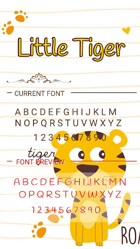 Please enjoy the pack of Fonts for Android FlipFonts to provide you the ability to change your device’s typeface for free. Using the FlipFont font changer program installed on your Samsung Galaxy. Please browse through our FlipFont packs and our bundle font explorer is prompted. You can find the amazing and perfect font style which fits your taste well. Change your entire phone font into Little Tiger. Come and experience the customized font for you. The feature of Little Tiger is compatible ability. It’s time to be the decider of your own phone 👌😉. And you can search other fonts like Little Tiger through Hifont app.