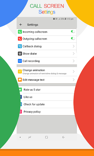 Settings: Including many features of Incoming callscreen,Outgoing Callscreen,Callback dialog,Call recording,Change animation and smart T9 Phone Dialer in settings.