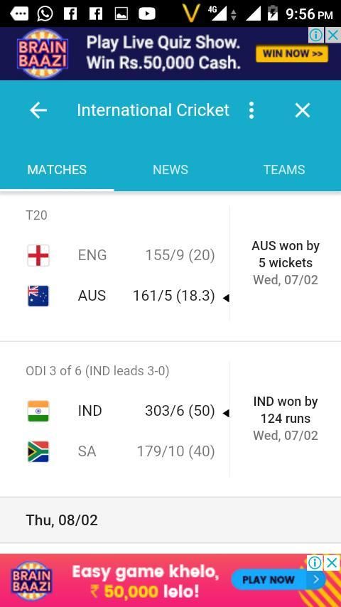 Show live real-time cricket score of All types of cricket match around the world, cricket news, international cricket team list.