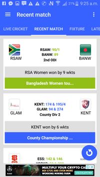 Recent Matches – This app display recent matches with Series Name, Date, Venue and full cricket scorecard updates.