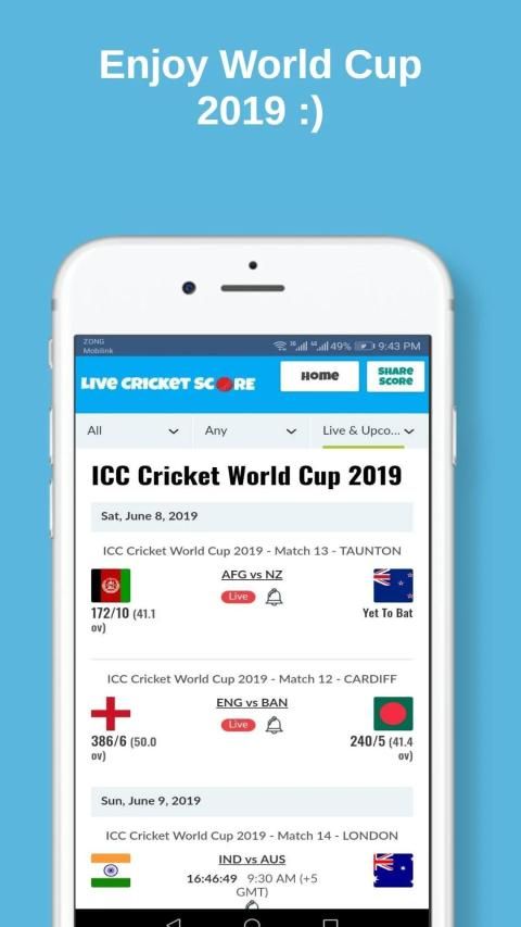 Here are some news for you to learn more about one of the best android apps. 20,000+ users downloaded Live Cricket Score 2019 latest version on 9Apps for free every week! You will feel better when you start playing This hot app was released on 2019-06-17. Hope you will like this amazing app!