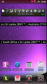 The widget shows latest cricket live scores in a horizontal scrolling view (Marquee). And it's free! Just see the screenshots.