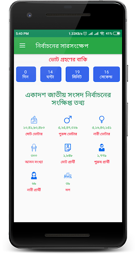 The Live Election is a very simple app that will show the live voting results and all information of the Eleventh National Election of Bangladesh