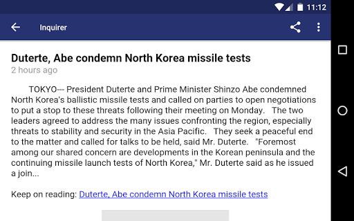 This means that if you feel like reading the news from Inquirer, you can do so by selecting the Inquirer button - same goes for the other news agencies we support!