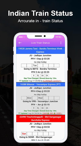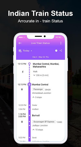 Know Railway Train Booking App schedule and route of train with halt duration at its stops. You can also check all the intermediate stations between any 2 stops while checking the live train status. This along with Live Train PNR Status prediction is one of the unique features of this Live Train PNR Status app.