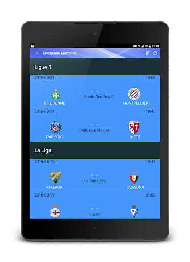 * Fixtures with live update: list of matches are grouped by team and round. The time is converted to the current device time zone, so there is no need for time calculations.