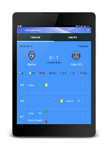 * Get match details with live events updated automatically: goals, yellow/red card, substitutions, penalty etc.