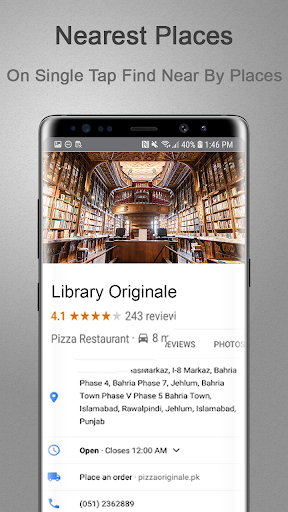 . You can find nearby Airports, Banks, Café, Restaurants, Hospital, Hotels, Gym, Pharmacy, Shopping Malls and many other places. Just click on your desired place and map navigator with route tracking will lead you there with the shortest way and telling the estimated time to reach there with real satellite navigation.