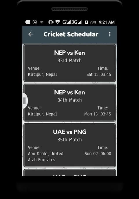 -> Easy to Get All Cricket Match Schedule in one App.You can seen all the cricket Series and Upcoming match Schedule.
