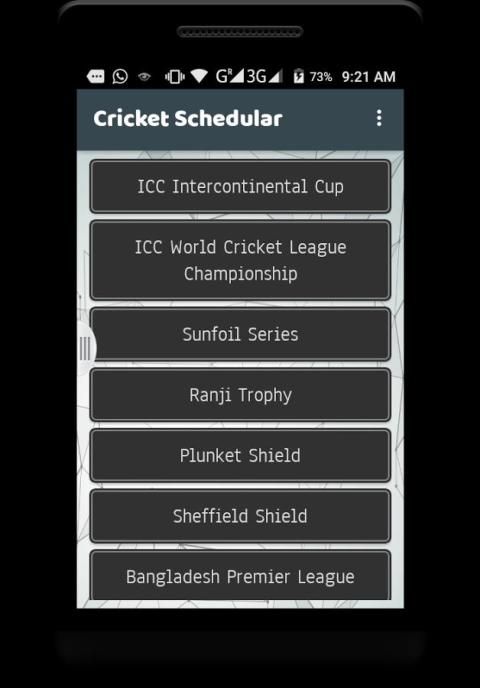 -> Cricket Live Score & Schedule app you will get live updates on all the formats of Cricket like ODI, Test, T20, IT20, League,National T20 Cup, IPL,BBL,BBL Schedule,Big Bash Schedule Quadrangular one-day series,cricket cup 2016, ipl9 as well as all the international series.