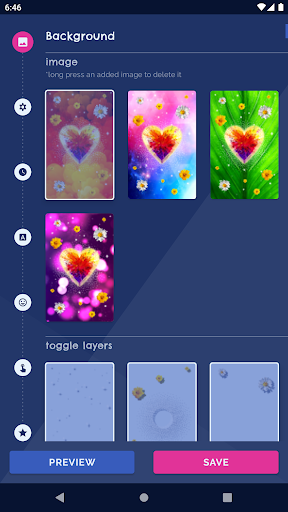 Create your own themes by adding clocks, frames, emoji, animated shiny stars, magic touch to the background changer, or even make it a 3D wallpaper or 4D wallpaper (parallax wallpaper with parallax effect). It works on the lock screen too!