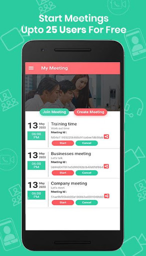 To get started, download the app to your device. Login to app and start a meeting by entering the meeting title, meeting time and meeting details. Once you have created meeting share meeting details with your participants. They can join it by a url given to them with web or can join in app with entering meeting ID.