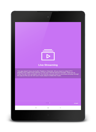 Please consider that this app doesn't contain any built-in livetv channels or media items or iptv playlists.