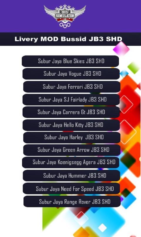 This application specifically contains a collection of the latest JB3 SHD MOD Bussid Livery as follows: